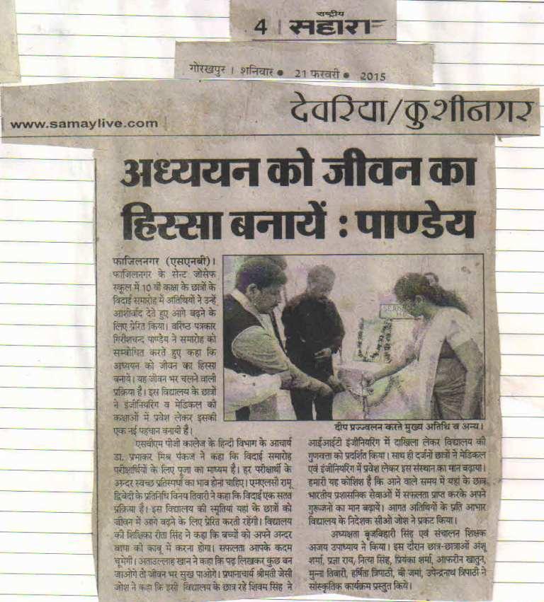 St.Joseph’s school is an ideal residential school for boys and girls owned by St. Joseph’s School Society, Sathiaon, Fazilnagar Kushinagar, run by South Indians with the Motto from darkness to light and is open to children of all communities.